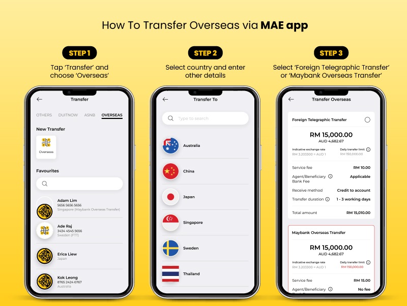 - Multiple Transfer Options: Access both Foreign Telegraphic Transfer (FTT) and Maybank Overseas Transfer (MOT), with a combined daily limit across these services.